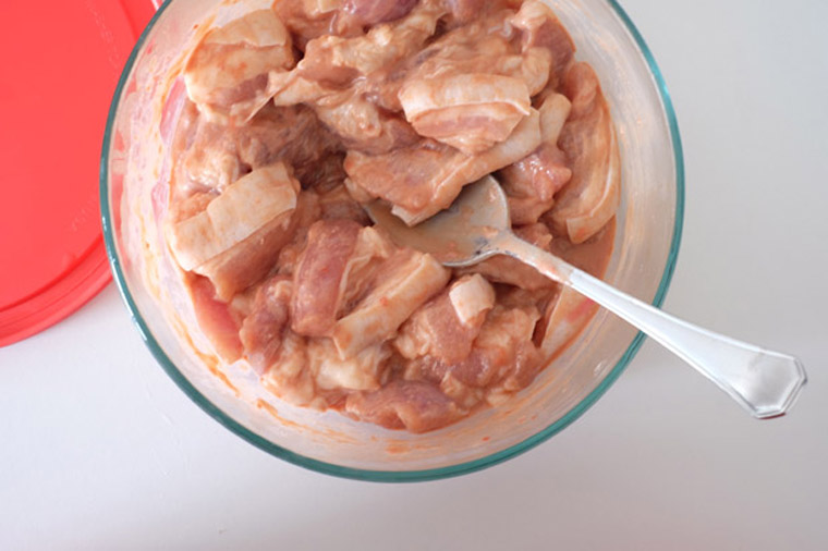 - I like to marinate my meat in glass container with plastic lid. If you don’t have one, use a bowl and clingfilm to cover it.