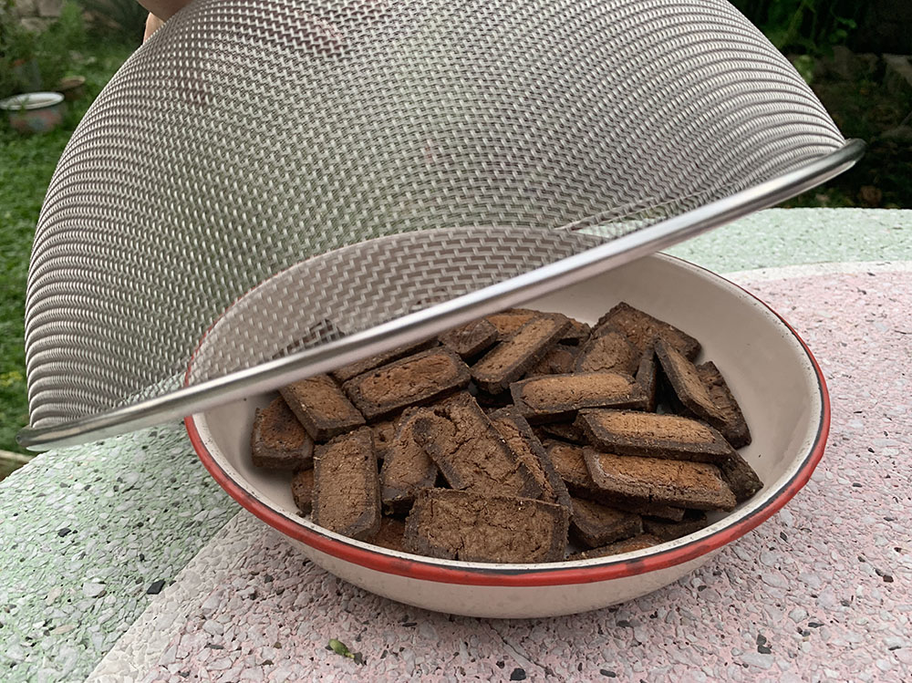2. Cover belacan to protect it from flies Make sure you prepare a food cover or a container with lid to keep the belacan. When toasting belacan, it will attract a lot of flies.