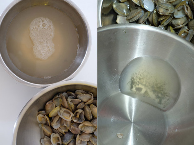 The Internet is divided on how to clean them – some merely ask to be soaked in fresh water for 20 minutes or adding black pepper into water. What is more reliable than the Internet? A reputable chef. Riccardo Ferrarotti, chef and director of Bottega Mediterranea, who once showed me how to make a super delicious seafood soup  gave some tips.