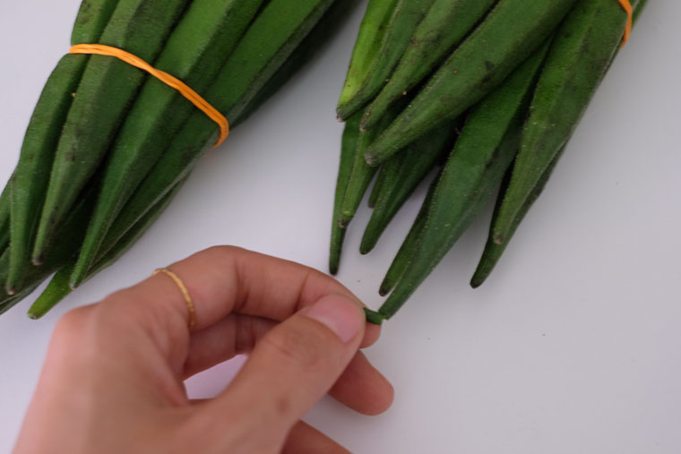 6. Choose young okra. Old okra is fibrous and hard to chew. How to know if the okra is young? The bottom can easily brick at the bottom.