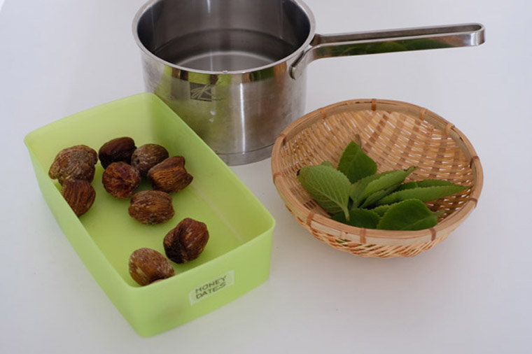 • Step 1 Fill pot with 1.5 L of filtered water. Add Indian Borage leaves and honey dates.