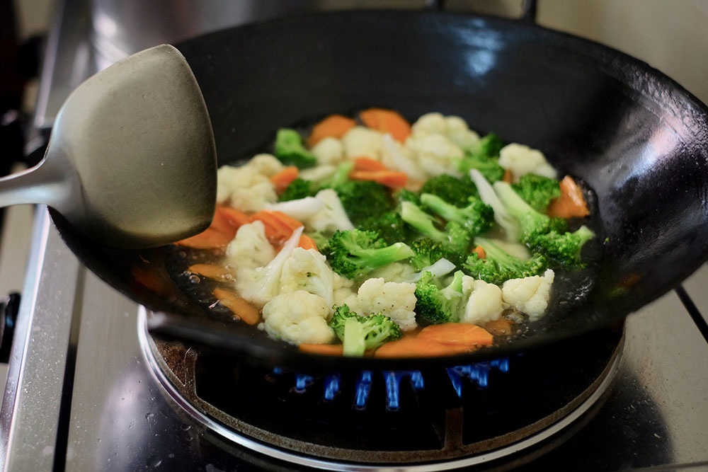 • Step 3 REMOVE VEGETABLES: Take out the vegetables into a separate plate. Pour away the water in the wok. Turn on the fire so that water will evaporate entirely before cooking.