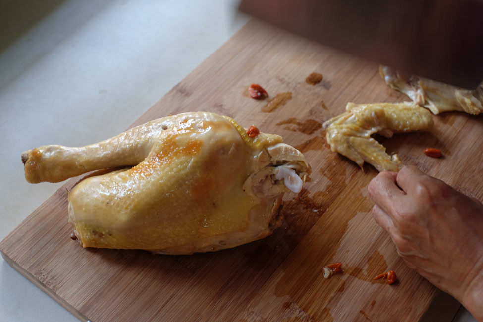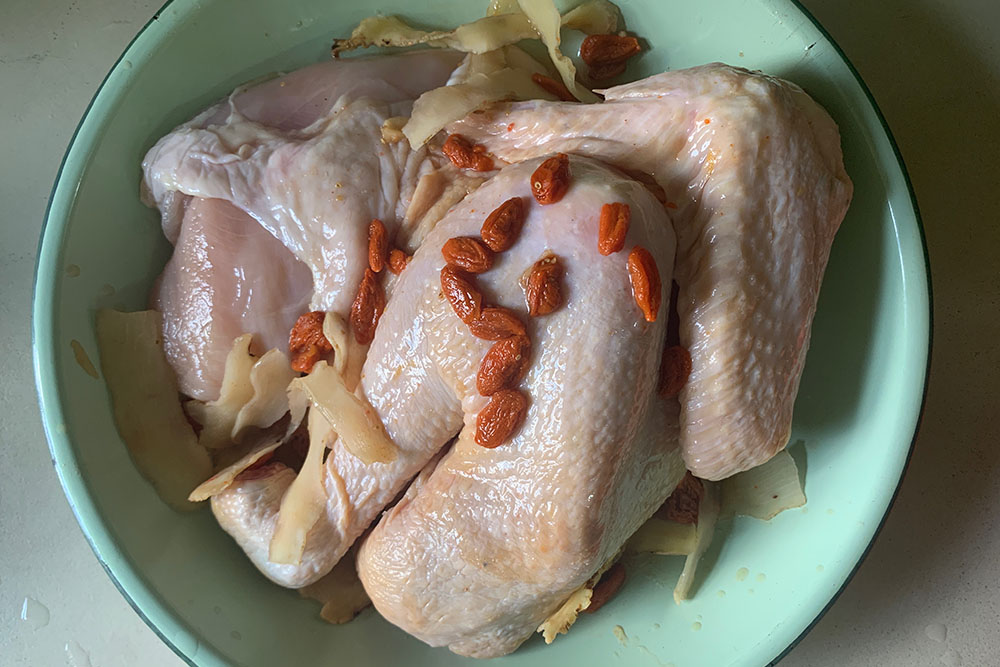 Easy steamed chicken made with three potent Chinese herbs