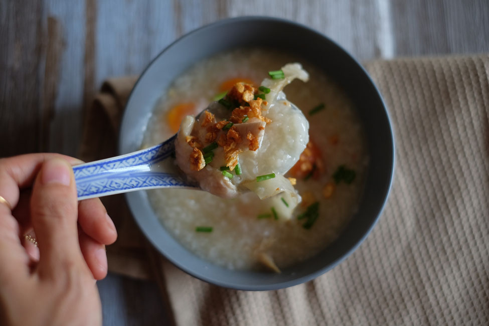So yesterday, we made herbal chicken for dinner and used the leftover to make congee for lunch. It's super easy to do; even if you've never cooked before, I'm sure you can do it. Let's try!
