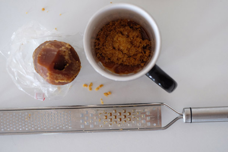 • Step 2 Make gula melaka sugar syrup. Chop or grate gula melaka and place into a mug. Add 1 tbsp of water and pop into the microwave for 30 seconds. Stir well until gula melaka is dissolved.