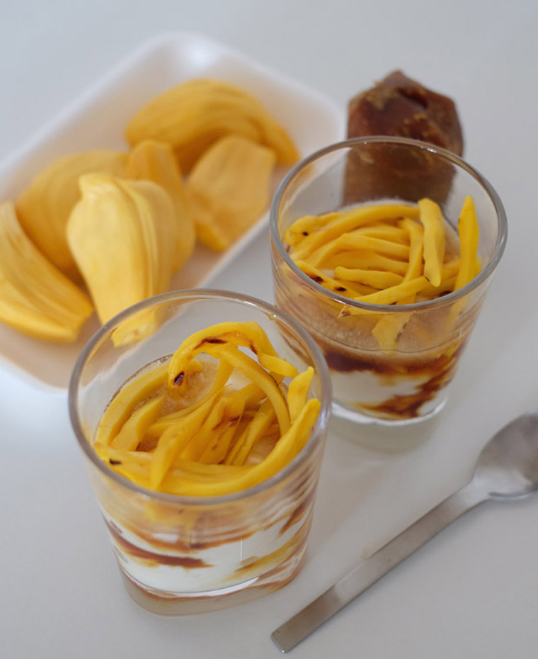 • Step 3 Scoop yoghurt into a clear glass, pour some gula melaka syrup onto it and top with sliced nangka.