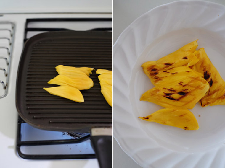 • You can skip grilling the jackfruit. However, I like that the flavour intensified when the fruit receive some heat and the charred marking make the dessert looks even more inviting.