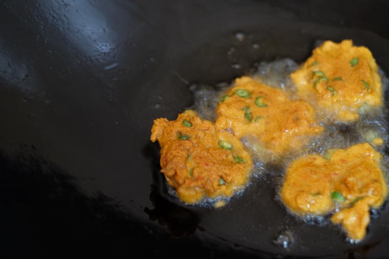 4. FRY: Heat oil in a wok on medium fire. Deep fry fish cakes until golden brown, about 3 minutes.