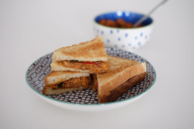 This is an incredibly easy dish when you’re in a rush. It’s delicious, filling, and can be made in under 10 minutes. I found that many Indian family in Malaysia make this often and have it with rice. My family who is used to ‘blander’ Chinese cuisine for dinner however prefer to have it with bread instead.