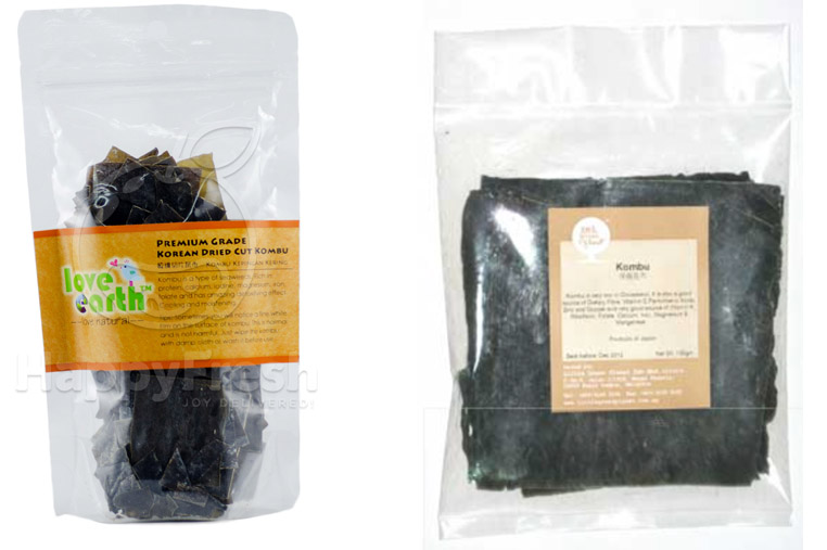 Korean Dried Cut Kombu from Village Grocer (RM 12.60/ 60 g) and Kombu from Planet Organics (RM 9.10/ 13o g)