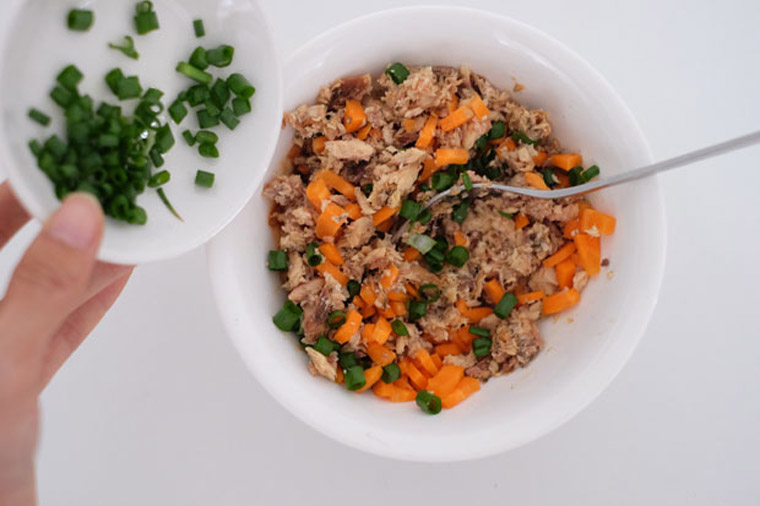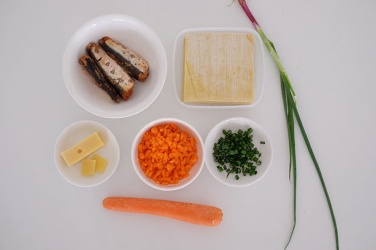 • Step 1 TO MAKE FILLINGS: Mash sardines with a fork. Add spring onions and carrots. Season with salt and pepper.