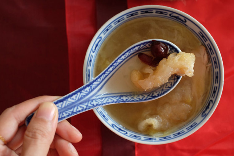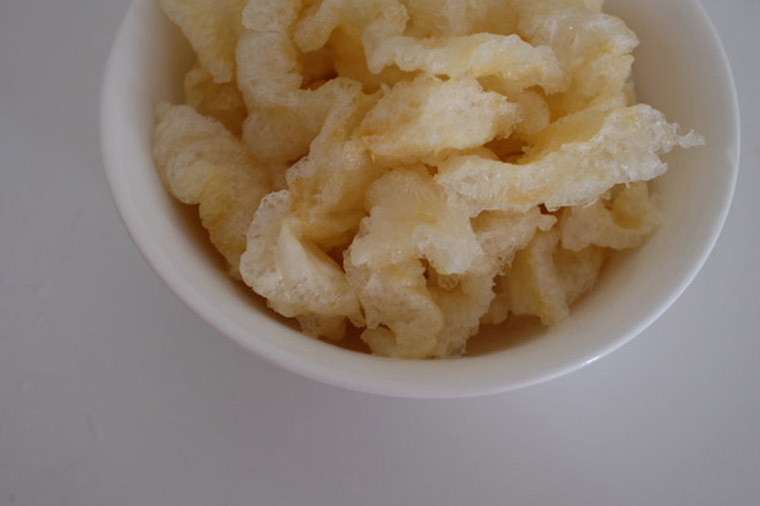Despite being seemingly an inferior fish product to many, fish maw is exalted and considered as a Chinese delicacy. Besides, it is a good source of collagen used in food industry to create water-resistant glue (source). It’s spongy texture allows it to absorb the flavours of other ingredients. More information on fish maw