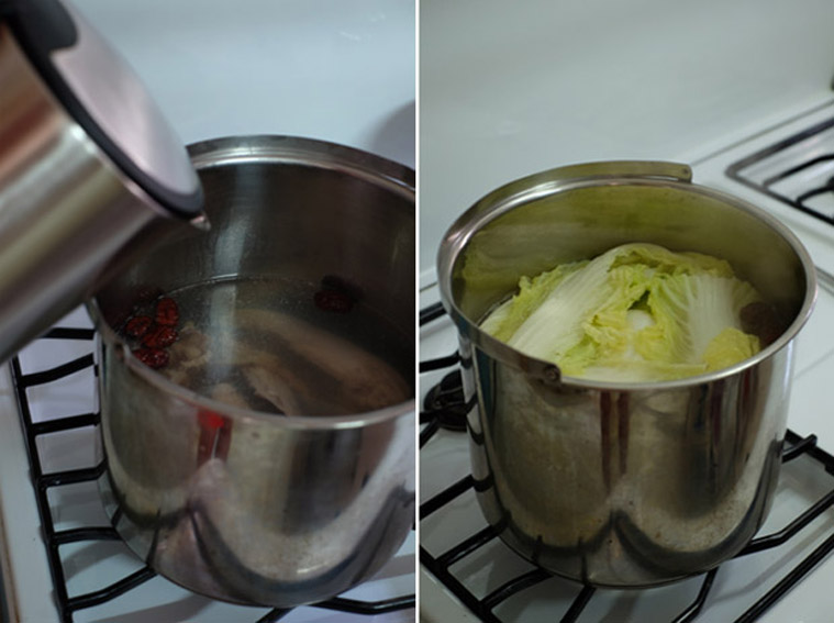- Step 3 BOIL: Place chicken, scallops, cuttlefish and red dates into stock pot/ thermal cooker pot. Boil hot water in a kettle and add into the pot. Cover and bring to boil. Then add in cabbage. If using regular pot, cover and simmer for 2 to 3 hours. If using thermal cooker, simmer for 30 minutes and then transfer to thermal cooker.