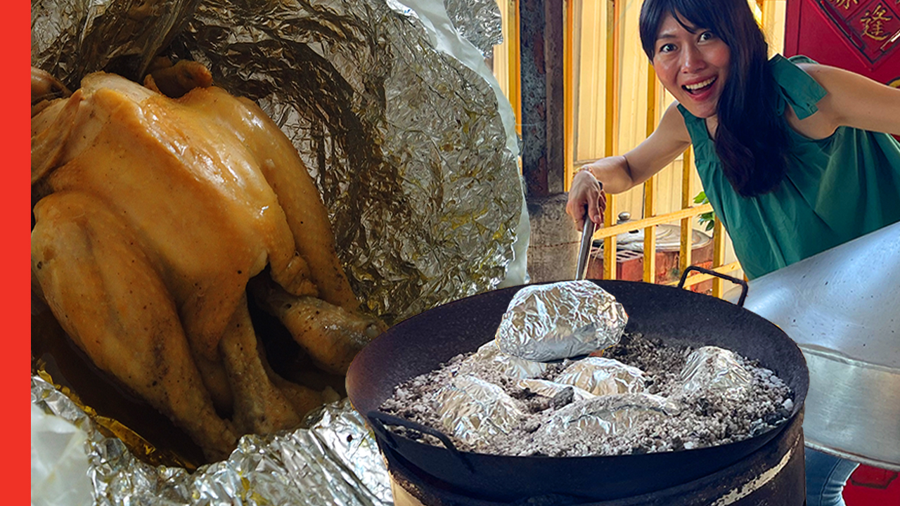 Salt Baked Chicken is a popular street food marinated in salt & herbs, then wrapped in wax paper and foil to bake. It’s famous Ipoh but also found in Kuala Lumpur! Ipoh is famous for its many street food including Salt Baked Chicken (盐焗鸡).