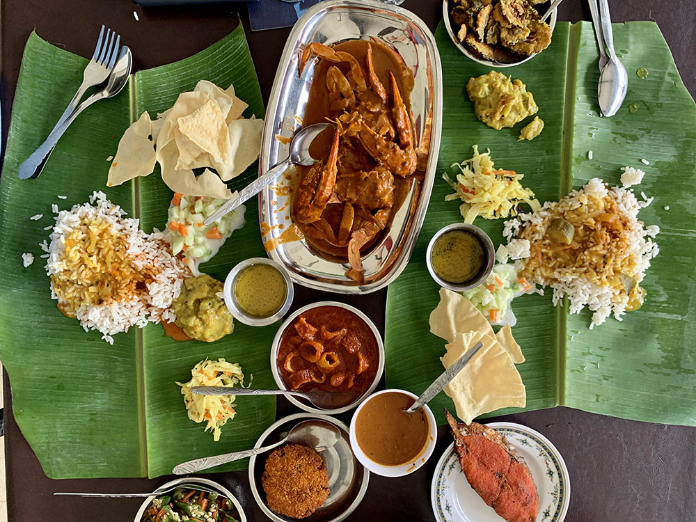 WHAT TO ORDER: Banana leaf rice, crab curry, salted egg curry, ikan bilis sambal.